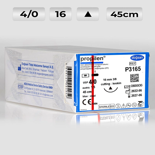 DOĞSAN 4.0 Keskin Propilen Sütur, yüksek dayanıklılığı ve dokulara dost yapısıyla öne çıkan emilmeyen (non-absorbable) cerrahi dikiş ipliğidir.