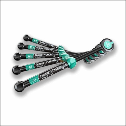 GC G-aenial A’Chord Kompozit Promo, GC’nin en yeni nano-hibrid kompozit teknolojisiyle üretilmiş, estetik, dayanıklı ve kolay uygulanabilir bir dolgu materyalidir.