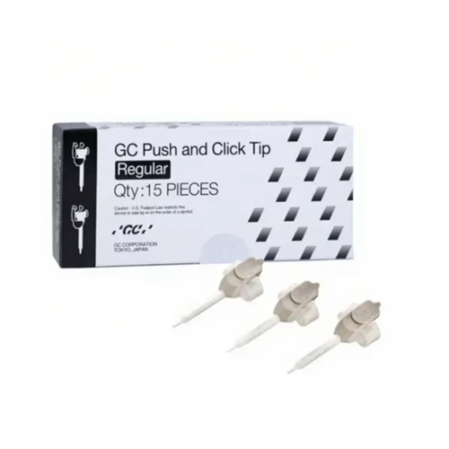 GC Push and Click Tip Regular, FujiCEM ve benzeri otomiks (otomatik karıştırma) sistemli cam iyonomer simanlar için özel olarak tasarlanmış karıştırma uçlarıdır. Yüksek viskoziteli materyallerin homojen şekilde karıştırılmasını ve doğrudan uygulanmasını sağlar.