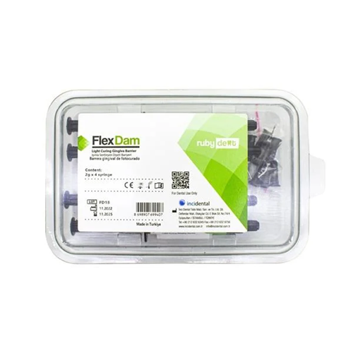 Ruby FlexDam Işıkla Sertleşen Diş Eti Bariyeri, diş hekimlerinin diş eti ve yumuşak dokuları koruyarak restoratif ve estetik işlemler gerçekleştirmesini sağlayan yüksek kaliteli bir bariyer malzemesidir. Işıkla sertleşen formülü sayesinde hızlı uygulama ve uzun süreli koruma sağlar.