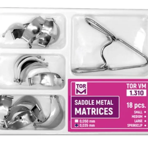 TOR 1310 Hazır Konturlu Matrix, posterior kompozit restorasyonlarda hızlı, etkili ve anatomik olarak doğru konturlar elde etmenizi sağlayan bir hazır formda matriks sistemidir. Özellikle sınıf II restorasyonlarda dişin doğal formuna uygun kontur ve temas noktası oluşturmak için geliştirilmiştir. Zaman kazandıran yapısı ve kolay yerleşimi ile diş hekimlerine klinik süreçte büyük kolaylık sunar.